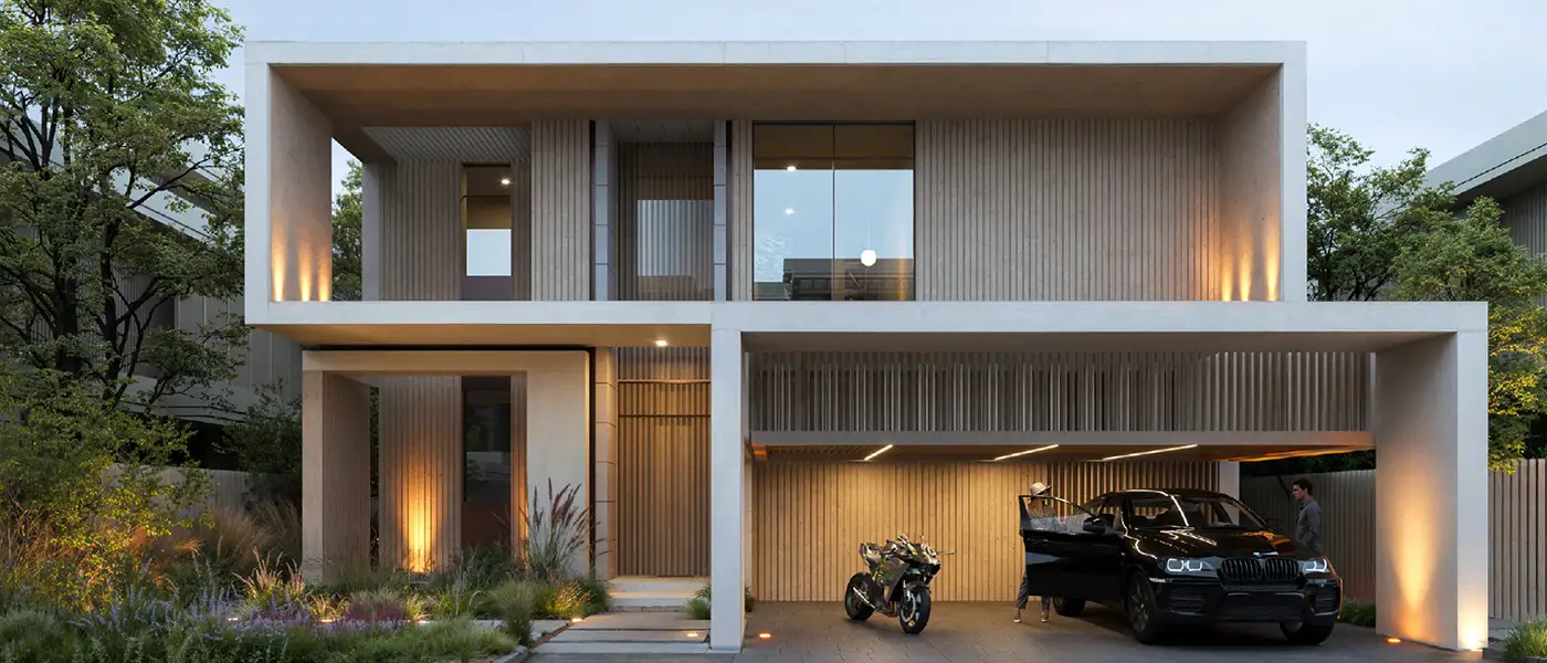 combines the qualities of modern sophistication with nature in an exceptional waterfront living concept. The residential development rests between Abu Dhabi and Dubai as it offers peaceful living with convenient access to major UAE locations. This sanctuary harmoniously integrates with nature featuring pristine landscapes together with panoramic ocean views that include a secluded nature reserve. The development presents its residents with exceptional elegant residences that deliver incredible seascapes and broad green spaces under designs that draw inspiration from local architectural traditions. The façade is nestled on the renowned Sahel Al Emarat’s untamed coastlines while providing residents with easy access to the area. This premium community faces both Abu Dhabi and Dubai metropolitan cities while providing residents with peaceful living without compromising their connection to surrounding areas. Residents attain quick access to Zayed International Airport together with Al Maktoum International Airport, while they can quickly drive to Saadiyat Island and Atlantis the Palm. Residents experience dual access to a vivacious metropolis together with natural relaxation just across their path. Within the beachfront Island locale, the façade stands poised to take a position as one of the UAE's premier waterfront developments through its perfect architectural unity and exceptional lifestyle facilities. The architecture draws inspiration from the original spirit of cultural tradition to create an innovative design which merges modern elements with heritage elements. The extra-ordinary collection comes with its 08 residential building complex with apartments and duplexes at service, complemented by exclusive four types of villas. Explore the different villa style façades as Somer, Tala, Acacia and Canal Villas, on the other hand, the townhouse façades in two styles with Sikka and Alghaf townhouses. Plentiful glass walls let daylight pour into the building interiors, whereas the courtyards, shaded pathways and terraces establish a feeling of luxurious outdoor living. As soon as you walk through the entrance, the space reveals a refined atmosphere where peacefulness embraces you. Quality remains the interior focus point through custom timber products, rattan-patterned decorative walls along with elaborately detailed millwork installations. The depth and