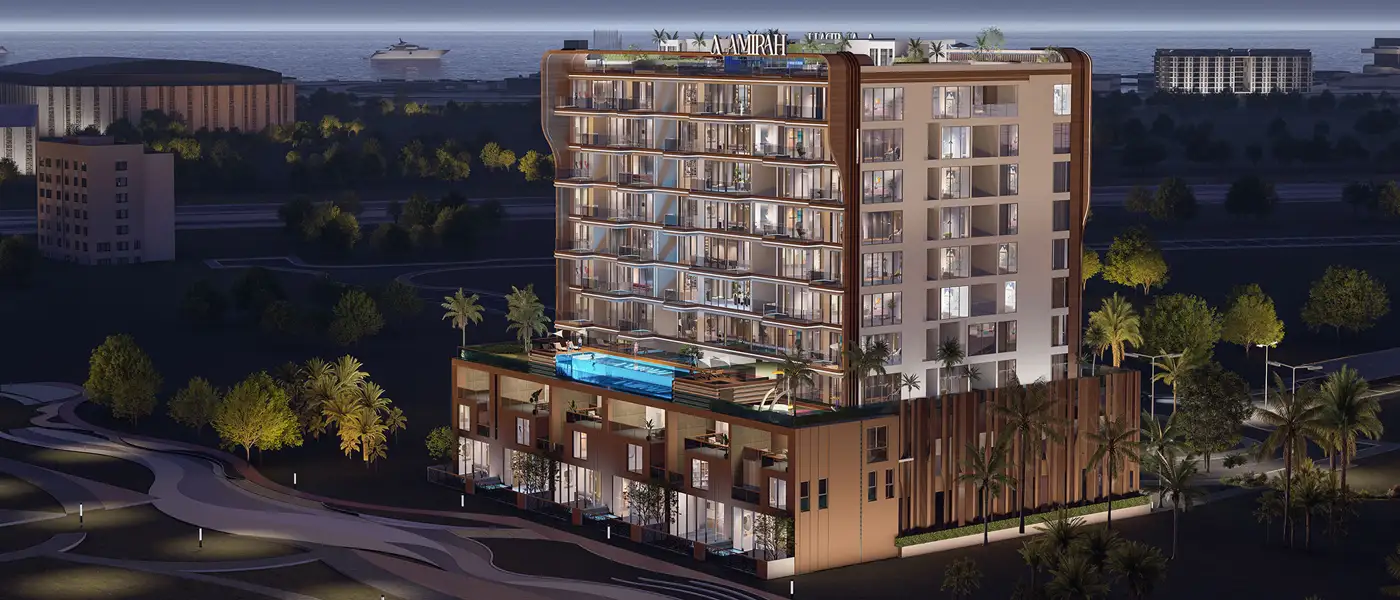 of waves, and the glowing golden colours of a Dubai sunset, this façade can now be seen as not merely a place to live, but a place that has been created, in imagination, and carved out in perfection. In this case, the living is not just a life but it is life as curated. It is an uncommon mixture of design, nature and style, encompassed in the easy rhythm of green living at the Island. Even in the smooth contours of its construction and all the sights that abound to reach out to the horizon, the façade is calling you to start a new chapter within yourself and in each of your life moments you can experience the epitome of luxury and comfort. With an ideal location situated on the famous Dubai Islands, which is one of the most ambitious and visionary projects in UAE. Such artificial islands are a rethinking of what waterfront living can be like, as it would be seen as a destination in a version that embodies eco-luxury resorts, wellness havens, and even luxury shopping in places such as Souk Al Marfa. Residents will be in a position to have smooth connectivity and live in a haven of sand, sea and skyline. The clean and green urban masterplan in the island assures a future ready with the richness of public parks and cleanest of the beaches that promises a life which is serene as it is spectacular. The architectural ideology is a sculpture in action on its own. The project is daring enough to be unconventional as it goes against the regular forms of geometry as it uses flowing lines and organic shapes and designs with corners. It welcomes the new life of residential in visually appealing building that resembles the waves movement and makes a balanced gradient in comparison with the geometric skyline of Dubai. Each of the building curves appears to play with the light and a desire to produce something classic but progressive. Such unobtrusive fusion of art and architecture leads to building that is a landmark as much as it is a home with the new standard of the high-quality urban coastal architecture being established. Once inside, the story keeps going